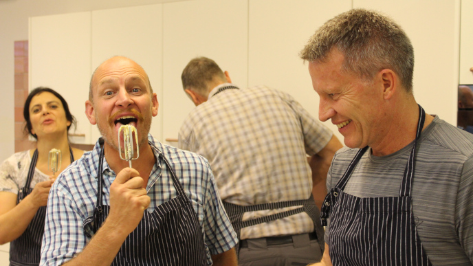 Da wir ein Agronomietrüppli sind geht’s weiter nach Grangeneuve. Es gibt hier nicht nur Landwirtschaft zu sehen. Am Abend kochen wir uns unter kundiger Anleitung der Hauswirtschaftsberaterin Judith Fasel ein feines, vielfältiges Sechsgang-Menu. Das bedeutet Teamarbeit und selbst Hand anlegen. Dazu degustieren wir Weiss - und Rotwein der Vignobles de l’État de Fribourg: Die edlen Tropfen aus dem Vully, wie auch von der Domaine des Faverges oberhalb von Saint-Saphorin finden guten Anklang. Highlight ist neben Chasselas-, Merlaü- und Syrah-Weine der Vully-Star, die Rebsorte «Freiburger».