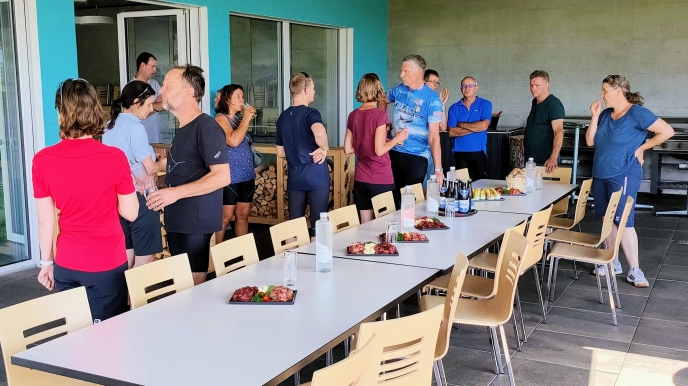 Gegen 13 Uhr erreichten wir Oberrüti, wo wir bereits erwartet wurden. Auf der wunderbaren Terasse der Metzgerei Klausner konnten wir eine Stärkung zu uns nehmen.