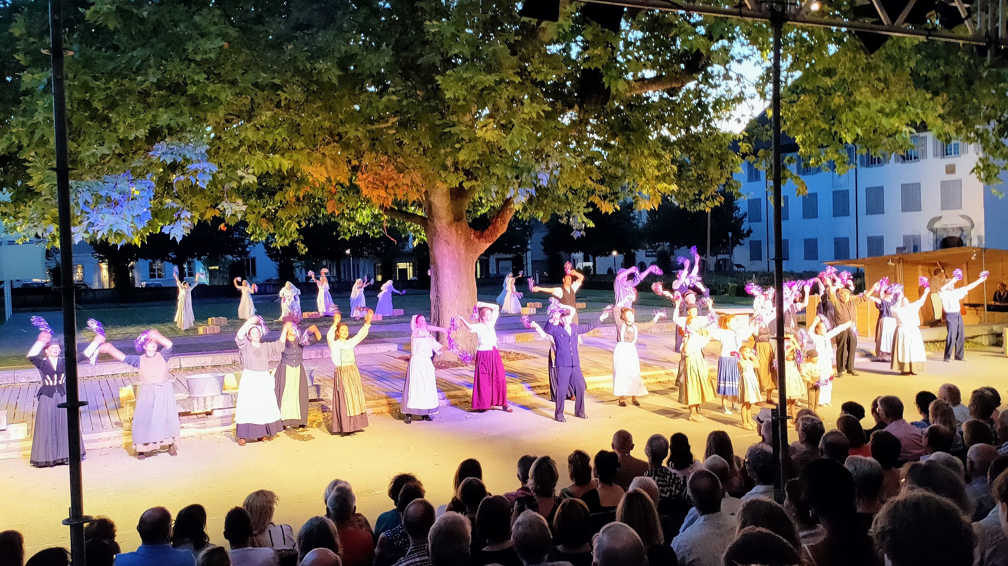 Nach dem Nachtessen verfolgten wir im angrenzenden Klosterhof das Freilichtspiel «Amerika». Die Geschichte handelte von der Zeit um 1850, als in Muri etliche Familien den Weg über den Atlantik nach Amerika antraten, um dort ein neues Leben zu beginnen.