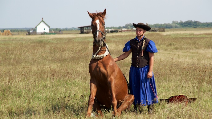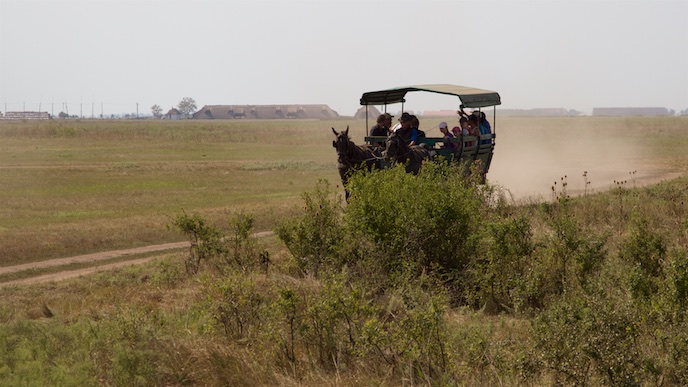 Weiterfahrt nach Hortobágy zum Gestüt Mátai Ménes. Dort haben wir eine Ausfahrt auf dem Planenwagen gemacht.