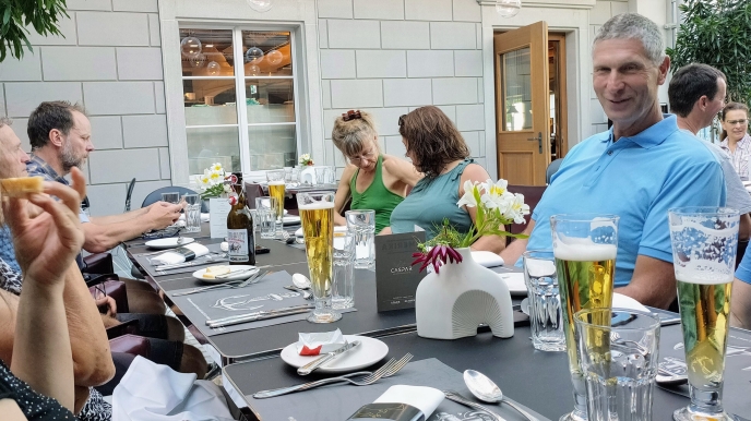 Diejenigen, welche bereits ihre Sacochen gepackt hatten, konnten den Apéro im Inseli Park geniessen. Kurz nach 11 Uhr verliessen die 9 Tandems (1 x 4-er und 8 x 2-er) Luzern in Richtung Norden. Die Fahrt durch das belebte Luzern war die erste Herausforderung für die einzelnen Teams.